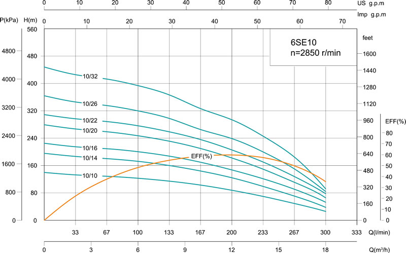 Cabezal hidráulico máximo: 448m